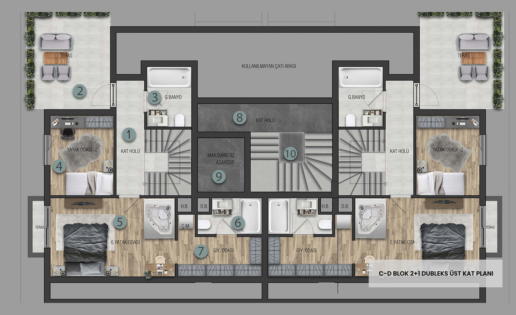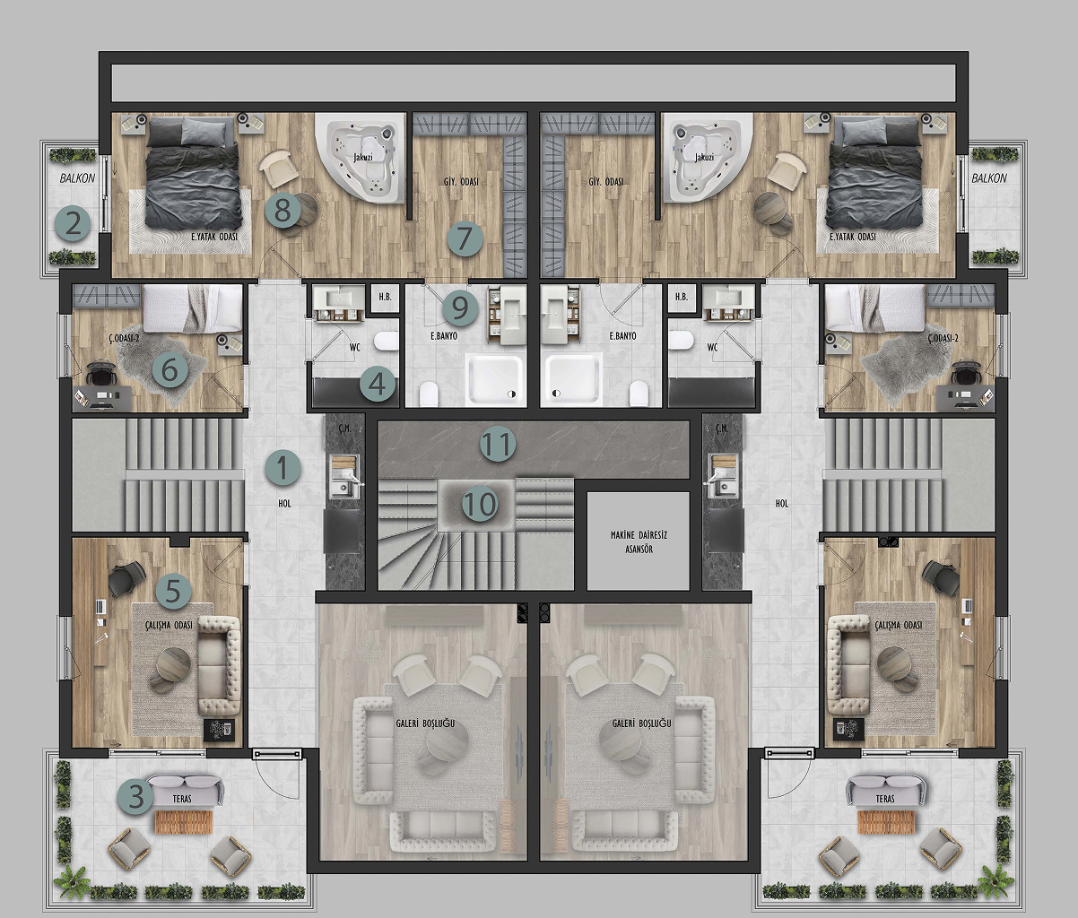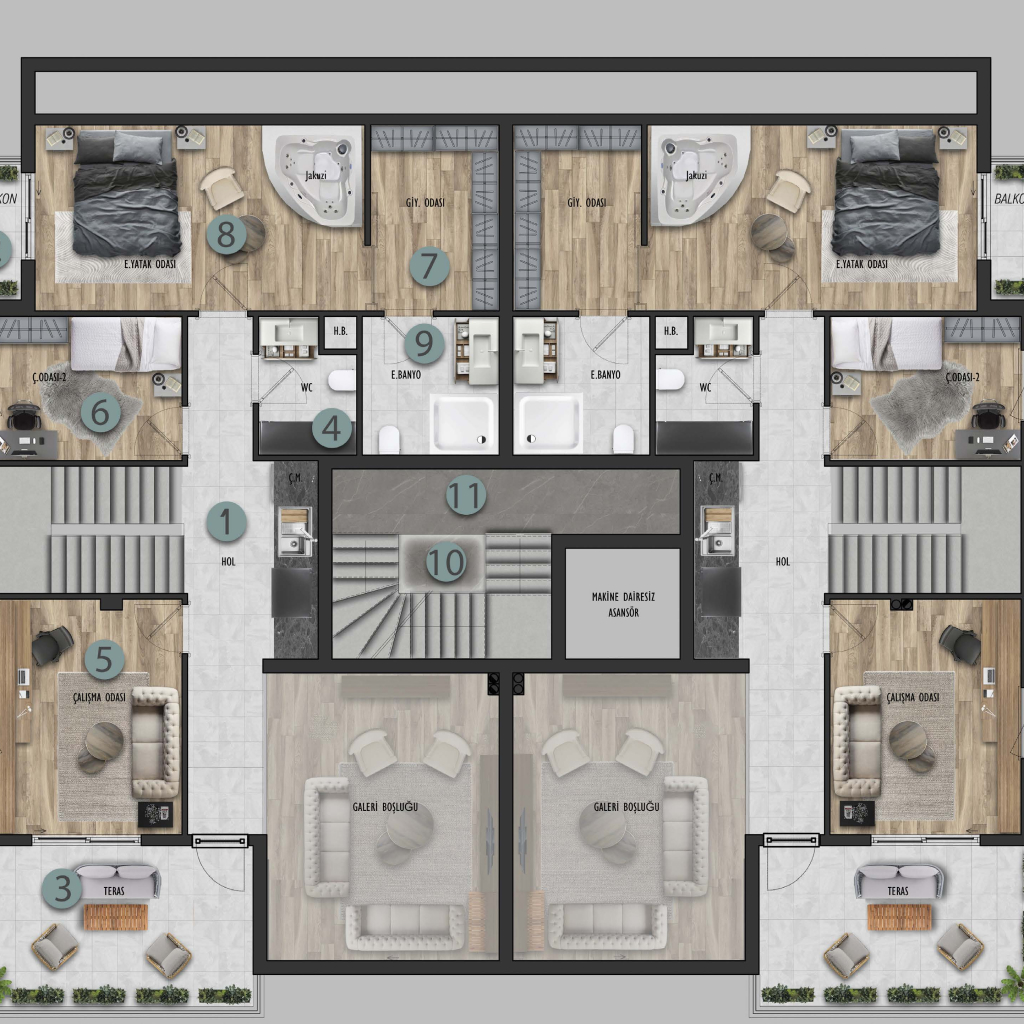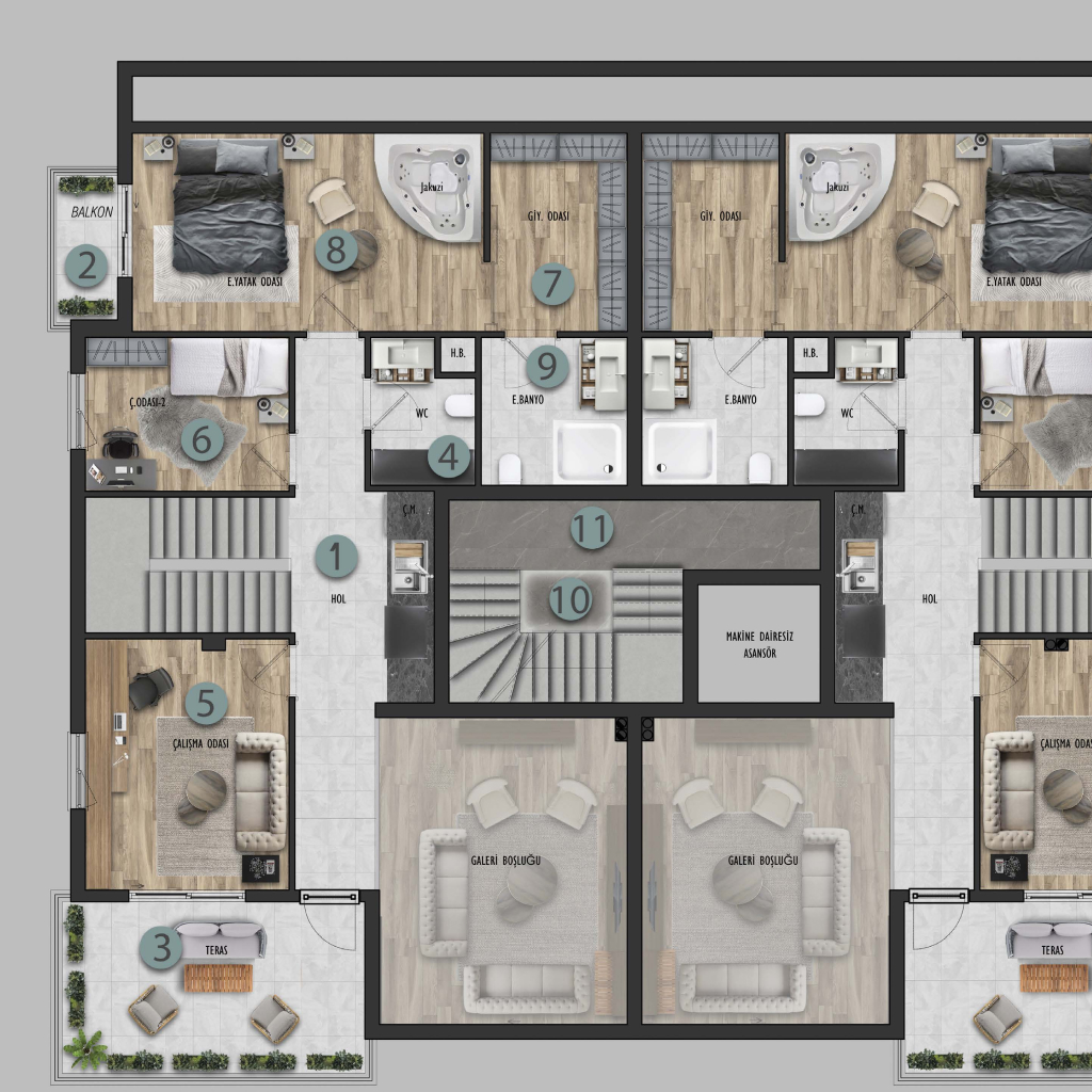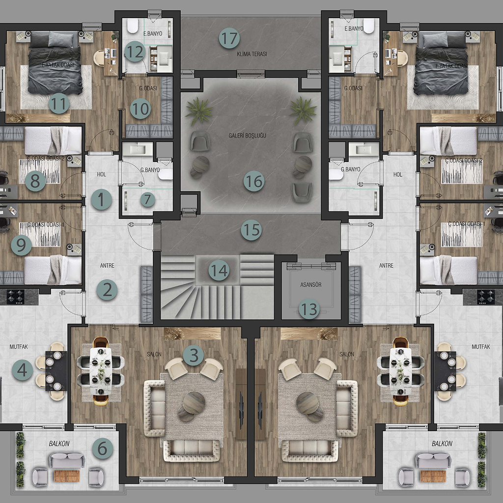 Modern ve konforlu sosyal tesislerimiz, spor alanları, havuzlar, çocuk oyun alanları, kafeteryalar ve yeşil dinlenme alanlarıyla hem eğlence hem de rahatlama imkânı sunar..