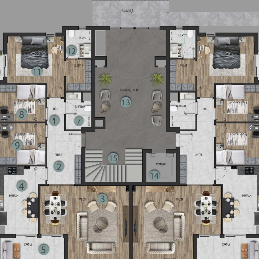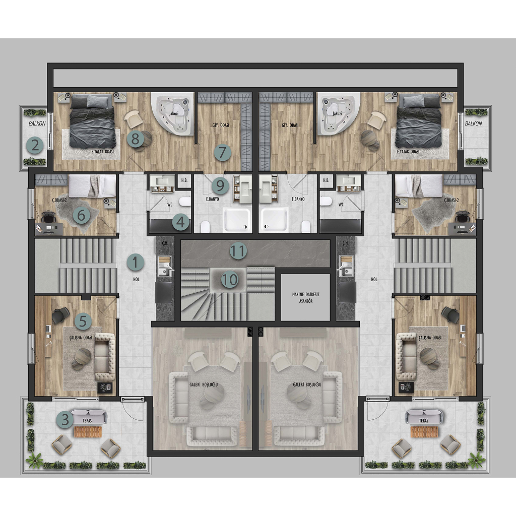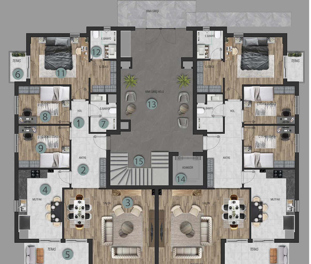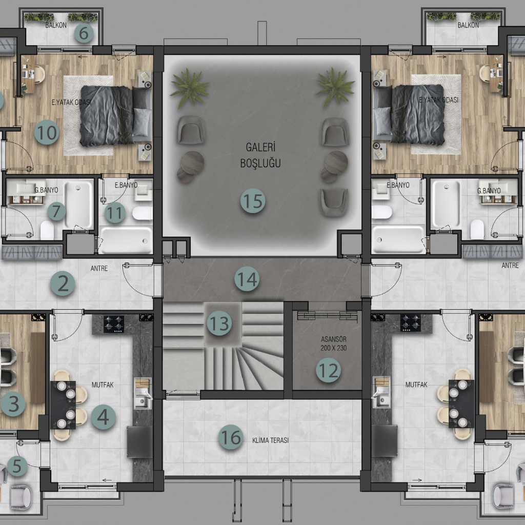 Modern ve konforlu sosyal tesislerimiz, spor alanları, havuzlar, çocuk oyun alanları, kafeteryalar ve yeşil dinlenme alanlarıyla hem eğlence hem de rahatlama imkânı sunar..
